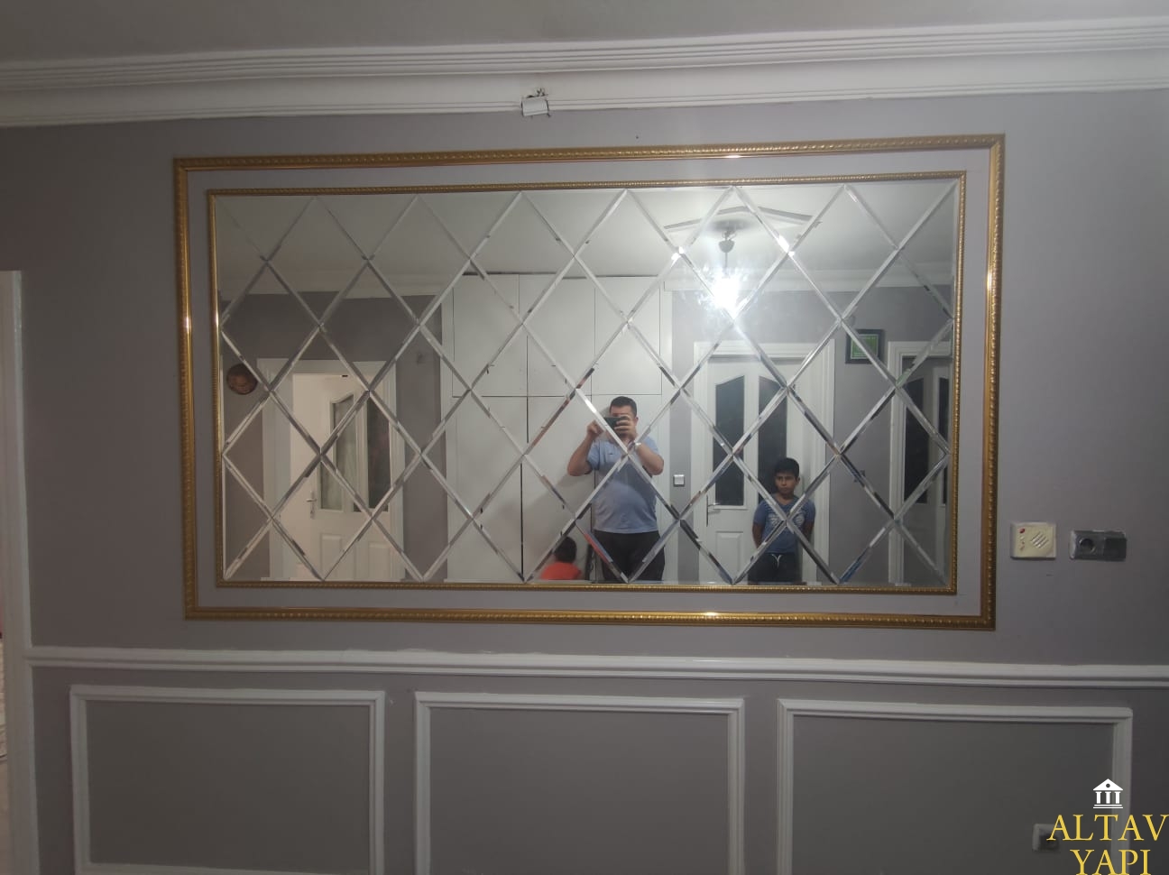 Baklava ayna m2 fiyatlarıyla, duvar kaplama baklava ayna modelleriyle, bronz ayna, eskitme ayna, cnc kesim ayna ve antik ayna gibi İstanbulda baklava desenli ayna duvar kaplama dekoratif aynaları en uygun olacak şekilde montajını yapıyoruz. Yaşam alanlarınızın vestiyer, dolap, salon, giriş, hol,mutfak, balkon, yatak odası, banyo, lavabo, lobi istediğiniz mekana, en kısa zamanda kurulumunu yapıp anahtar teslim yapıyoruz.İstenilen ölçü ve büyüklükte özel olarak hazırlanan baklava aynalar cnc kesim ile hatasız bir şekilde üretimini yapıyoruz. 4 mm flotal bozulmayan ayna ve kenar işlemeleri bizoteli olarak birbirine yapıştırılarak üretiliyor.